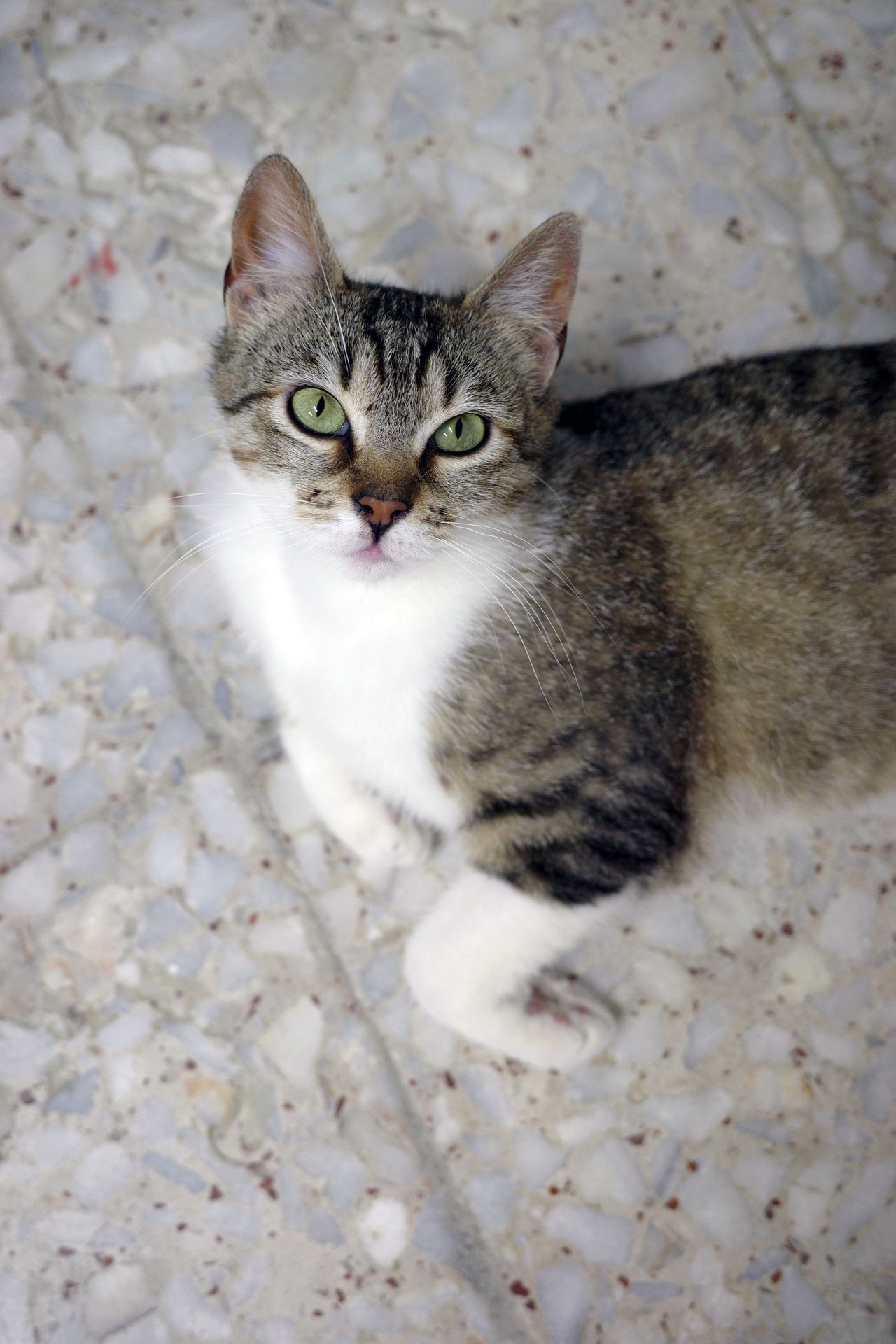 Cara es una gatita de aproximadamente un año, que rescatamos de una colonia en Usera. Una alimentadora nos dijo que hacía un par de meses había una gata -parecía gata- nueva. Fuimos a por ella para esterilizarla y volverla a soltar, pero cuando llegamos estaba acobardada en una esquina (ya nos habían dicho que los gatos de esa colonia la pegaban). Cuando entró en la jaula nos dimos cuenta de que era muy joven, estaba preñada y era casera. No paraba de restregarse dentro de la jaula y buscar el contacto con nuestras manos. Esto fue el día del apagón! Menos mal que madrugamos para pillarla.