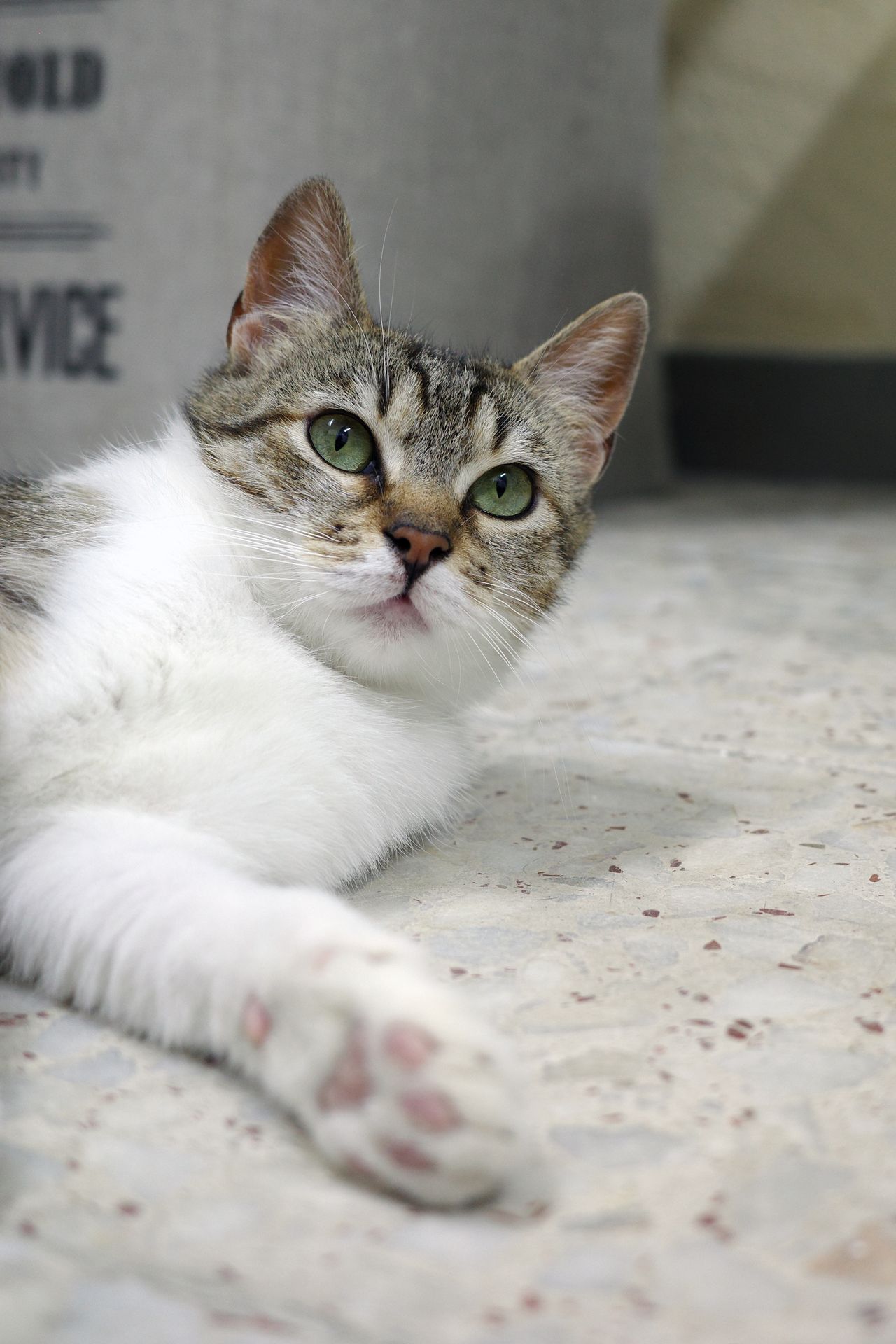 Es una gata muy tranquila, a pesar de su corta edad. Por supuesto también le encanta jugar y con sus compañeros actuales juega y les protege como si fuese su mami. Es una gata que transmite mucha paz y tiene unos ojazos verdes que son un escándalo, totalmente hipnotizantes.