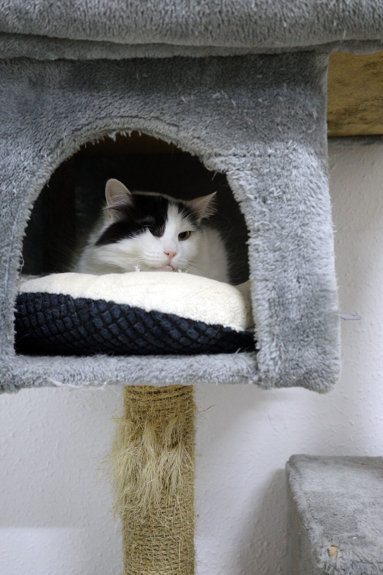 Muy pronto nos dimos cuenta de que aquella gata no era casera. Aún hoy solo se deja tocar por una de nuestras compañeras, pero cada vez va saliendo más de su amado rascador.
