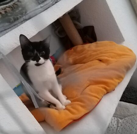 Luna es una gatita de siete meses, que llegó a nosotras junto con su madre Amy, que ya ha sido adoptada. Estuvieron antes en una casa de acogida, de la que tuvieron que irse. Luna ha convivido siempre con otros gatos. Es una gata preciosa, muy cariñosa y muy alegre.