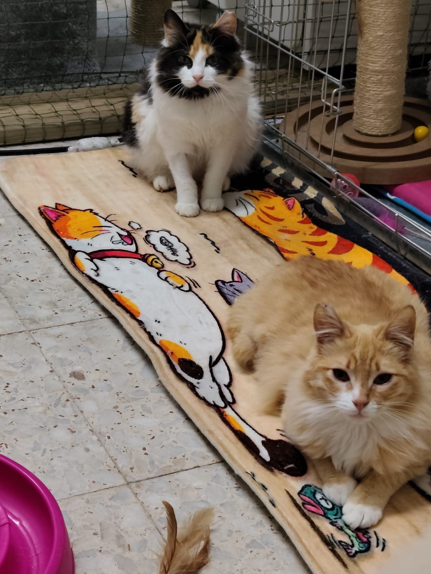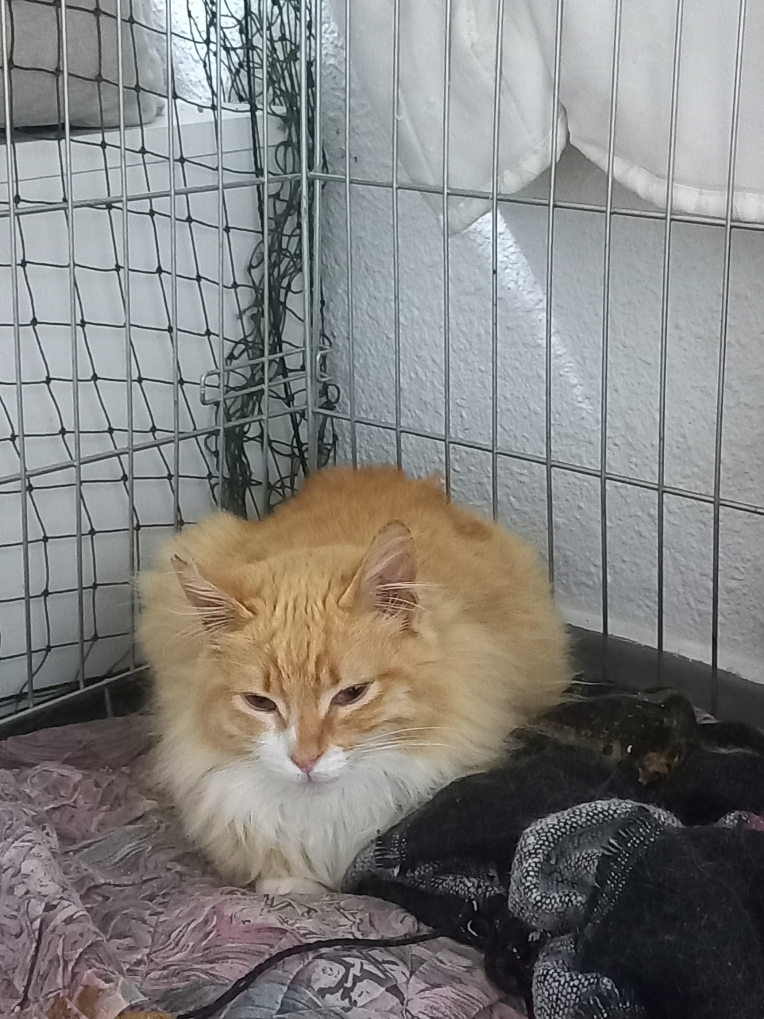 Napoleón lleva con nosotras desde febrero. Junto a Yosi y Chispita fueron rescatados de una colonia que estamos controlando en Orcasitas. Los vimos tan pequeños, que decidimos darles una oportunidad. Napoleón desde entonces está con Yosi. Avanzan muy poco a poco porque aún tienen mucho miedo, pero ya van saliendo a buscarte cuando estamos preparando la comida y juegan mucho entre ellos, y contigo con las cañas, que les encantan!! Napoleón es un poco más asustadizo que Yosi y todavía te bufa cuando vas a acariciarle y se encoje, pero va avanzando y estamos convencidas de que pronto será un gatazo precioso y afable con los humanos.